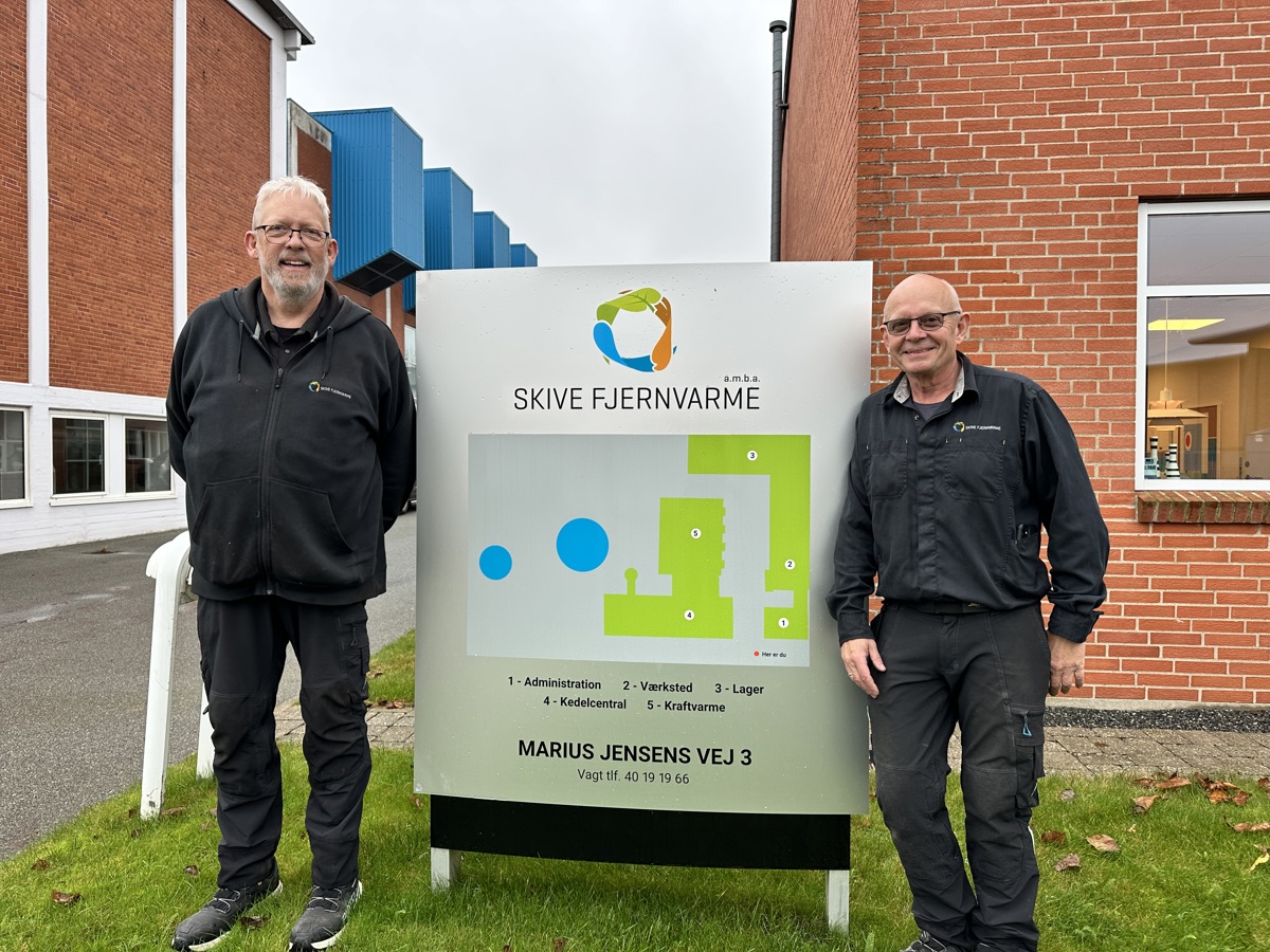 Skive Fjernvarme markerer to medarbejdere, der har været med gennem både forandringer, udfordringer og en hverdag fyldt med kollegialt sammenhold. Finn og Frode har været en del af en rejse, hvor Skive Fjernvarme har flyttet sig fra en ren fossil varmeproduktion på kul, olie og naturgas til en mere bæredygtig profil, hvor langt hovedparten af varmeproduktionen fremstilles med biomasse og overskudsstrøm.